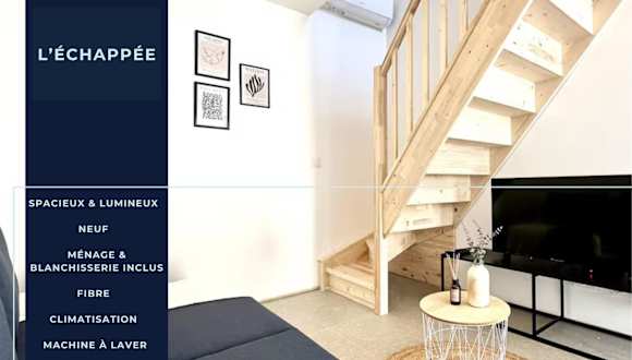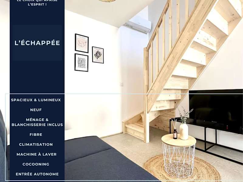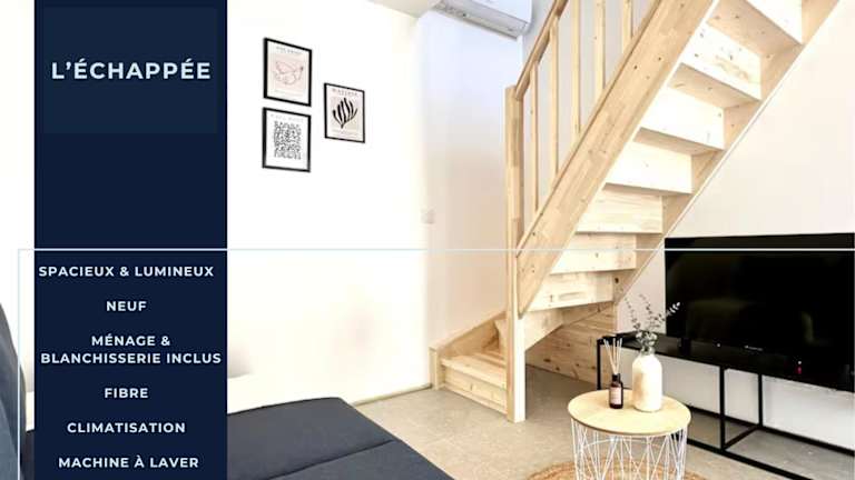 L'ÉCHAPPÉE - Clim - Parking bietet Übernachtungsmöglichkeiten in einer klimatisierten Ferienwohnung, die mit kostenlosem WLAN und einem Flachbild-TV ausgestattet ist.