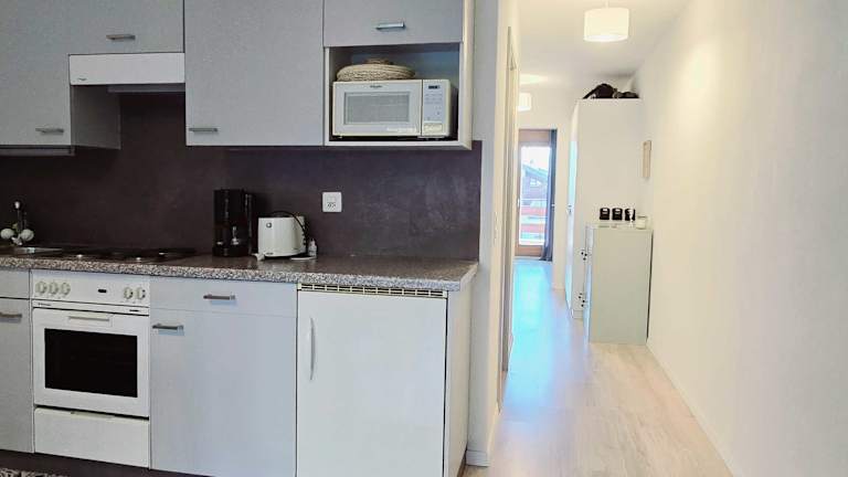 Die voll ausgestattete Küche verfügt über alle notwendigen Geräte für die Selbstverpflegung. In der Nähe befinden sich Restaurants, Cafés und ein lokaler Supermarkt im Dorf Torgon, die für jeden Geschmack und jedes Budget geeignet sind.