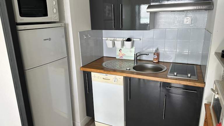 Die Ferienwohnung besteht aus einem separaten Schlafzimmer, einem Wohnzimmer sowie einer voll ausgestatteten Küche mit Kühlschrank und Geschirrspüler. In der Unterkunft sind Bettwäsche und Handtücher nicht im Preis enthalten, können jedoch gegen Gebühr ausgeliehen oder selbst mitgebracht werden. Ein Badezimmer ist ebenfalls vorhanden. Die Unterkunft bietet Nichtraucherzimmer und Familieneinheiten.