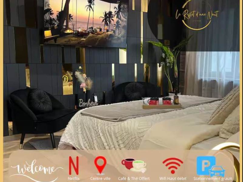 L'élégance - Charme - Jacuzzi - -Secret- Parking ist eine private Ferienwohnung, die in einem modernen Stil eingerichtet ist. Die Unterkunft bietet eine ruhige Atmosphäre und ist speziell darauf ausgelegt, einen komfortablen Aufenthalt zu gewährleisten.