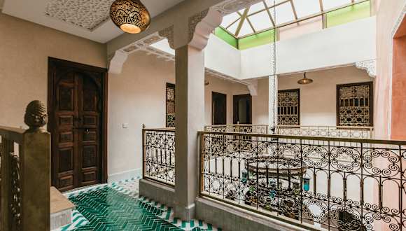 Das L'Emeraude de la Médina ist eine ideale Unterkunft im Herzen von Marrakesch, die kostenfreies WLAN, komfortable Zimmer und kostenlose Privatparkplätze bietet. Genießen Sie die Annehmlichkeiten wie eine Gemeinschaftsküche, eine Terrasse und einen Fahrradverleih. Das freundliche Personal spricht mehrere Sprachen und ist rund um die Uhr für Sie da. Beginnen Sie Ihren Tag mit einem köstlichen Halal-Frühstück und erkunden Sie die nahegelegenen Sehenswürdigkeiten wie das Orientalistische Museum und den Jardin Secret.