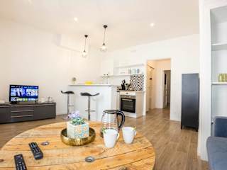 Die Ferienwohnung verfügt über ein Schlafzimmer, einen Flachbild-TV, einen Essbereich sowie eine Küche, die mit einem Kühlschrank und einem Ofen ausgestattet ist. Handtücher und Bettwäsche werden bereitgestellt. Das Zimmer bietet einen Blick auf die Stadt und ist mit Klimaanlage ausgestattet.