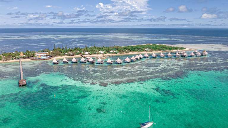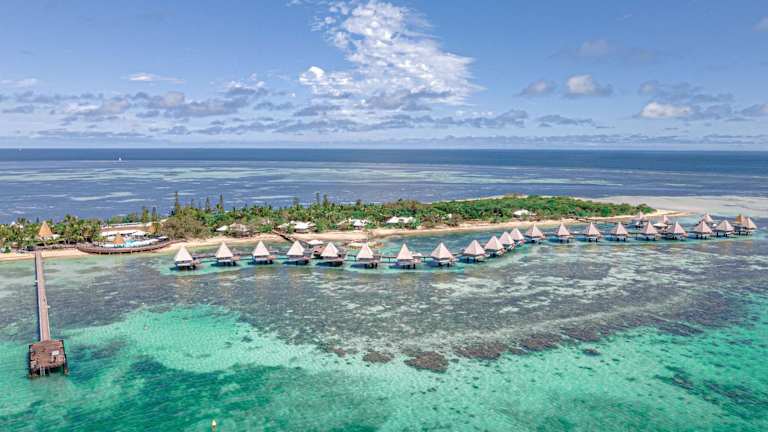 Das DoubleTree by Hilton Noumea Ilot Maitre Resort liegt direkt am Sandstrand der Insel Îlot Maître und bietet einen traumhaften Blick auf die türkisfarbene Lagune. Die Lage ist ideal für einen erholsamen Strandurlaub und bietet auch Zugang zu Wassersportaktivitäten. Das Resort ist etwa 30 Minuten von Noumea entfernt und bietet einen bequemen Transfer mit dem hoteleigenen Boot zur Insel.