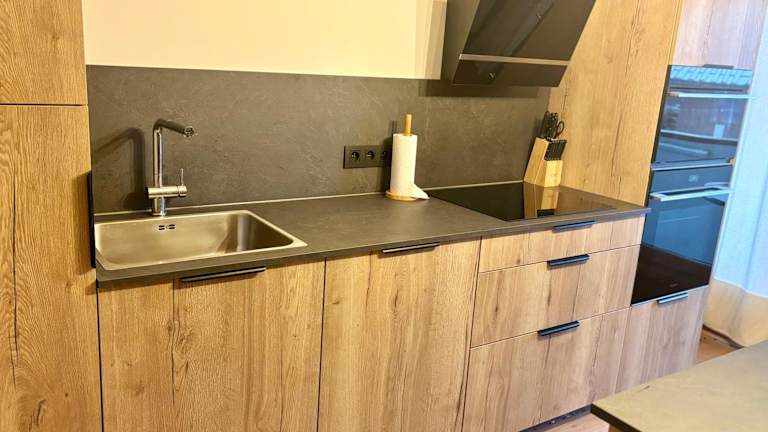 Die Ferienwohnung bietet zwei Schlafzimmer, ein Wohnzimmer mit einem TV sowie eine gut ausgestattete Küche, die mit einem Kühlschrank und einem Geschirrspüler versehen ist. Des Weiteren gibt es ein Badezimmer, das mit einer Badewanne ausgestattet ist.