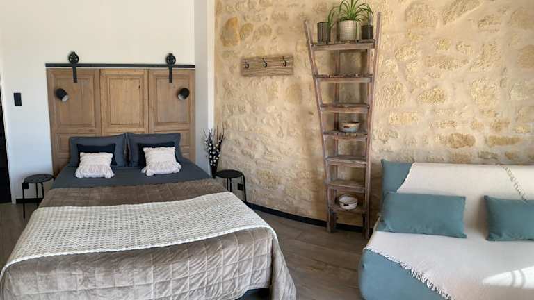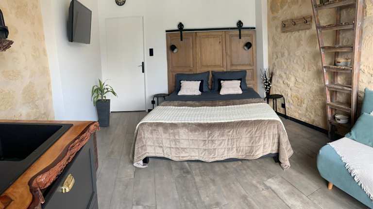 Das L inarretable studio independent ist eine charmante Unterkunft in Cubnezais, die sich ideal für Reisende auf der Suche nach Ruhe und Entspannung eignet. Mit einem schönen Garten, kostenfreiem WLAN und kostenfreien Privatparkplätzen bietet diese Nichtraucherunterkunft alles, was Sie für einen angenehmen Aufenthalt benötigen. Die klimatisierten Zimmer sind stilvoll eingerichtet und bieten Annehmlichkeiten wie einen Schreibtisch, eine Terrasse mit Gartenblick, ein eigenes Bad und einen Flachbild-TV. Genießen Sie ein kontinentales Frühstück und erkunden Sie die nahe gelegenen Sehenswürdigkeiten wie das CAPC Musée d'Art Contemporain und die Esplanade des Quinconces.