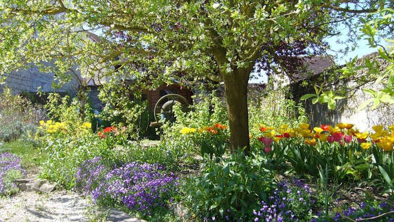 Die Unterkünfte im L'instant Présent sind komfortabel und bieten teilweise eine voll ausgestattete Küche mit Kühlschrank, Backofen und Mikrowelle. Genießen Sie den Blick auf den Garten und fühlen Sie sich wie zu Hause.