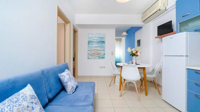 Die Ferienwohnung ist klimatisiert und verfügt über 2 Schlafzimmer, ein Wohnzimmer, eine voll ausgestattete Küche mit Kühlschrank und Kaffeemaschine sowie ein Badezimmer mit Dusche und kostenlosen Pflegeprodukten. Handtücher und Bettwäsche werden zur Verfügung gestellt.
