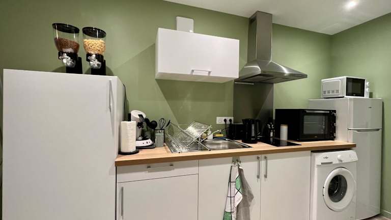 Das Apartment im L'Oliveraie verfügt über ein gemütliches Schlafzimmer, ein geräumiges Wohnzimmer und eine voll ausgestattete Küche. Sie werden alles finden, was Sie für einen komfortablen Aufenthalt benötigen, einschließlich eines Kühlschranks und einer Kaffeemaschine. Das Badezimmer ist mit einer Dusche und kostenlosen Pflegeprodukten ausgestattet. Handtücher und Bettwäsche werden gestellt, um Ihren Aufenthalt noch angenehmer zu gestalten.