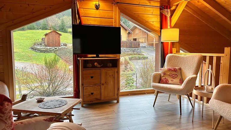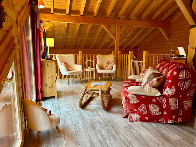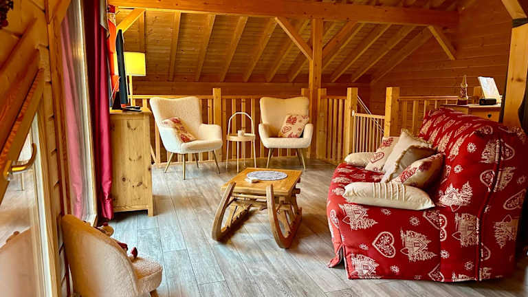 L'Orpin Givré - Chalet Limoselle mit großer Mezzanine präsentiert sich als eine komfortable Unterkunft mit einem Garten und einer Terrasse. Das Chalet bietet eine atemberaubende Aussicht auf die Berge und stellt sich als ideale Wahl für Naturliebhaber dar, die Entspannung sowie aktive Erholung suchen.