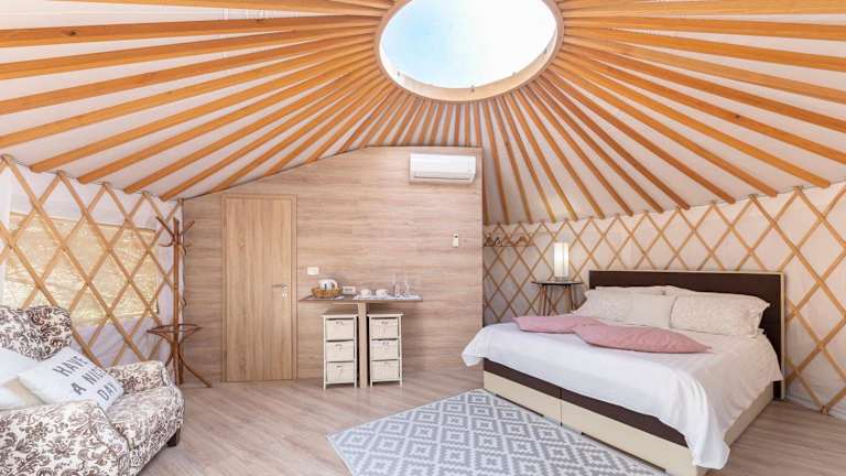 Das L.stile Glamping befindet sich in Portorož und ist nur 2,8 km vom zentralen Strand entfernt. Die Lage ist ideal, um die Schönheit der slowenischen Küste zu erkunden und die zahlreichen Attraktionen in der Umgebung zu besuchen. Der Aquapark Istralandia ist 23 km entfernt und die Burg San Giusto erreichen Sie nach 35 km. Der Flughafen Portorož ist nur 7 km entfernt und bietet eine bequeme Anbindung an die Unterkunft.
