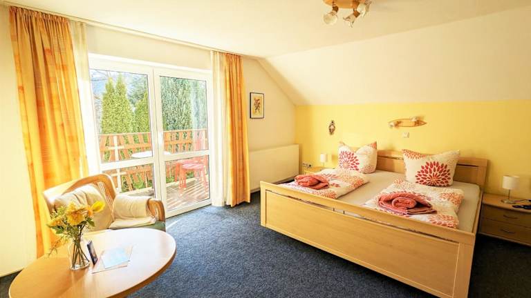 Die Ferienwohnung umfasst ein Schlafzimmer und ein Badezimmer, das mit einem Haartrockner ausgestattet ist.