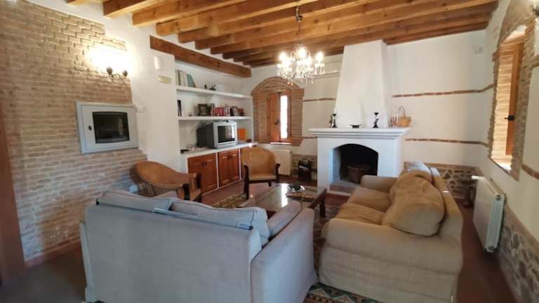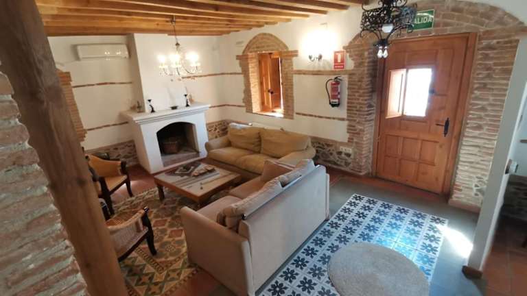 Erleben Sie einen erholsamen Aufenthalt im La Aldaba del siglo XX in Alcañizo. Das klimatisierte Ferienhaus bietet komfortable Unterkünfte mit kostenfreiem WLAN und einem Balkon. Genießen Sie den Stadtblick und entspannen Sie in den geräumigen Zimmern mit 4 Schlafzimmern und 6 Badezimmern. Starten Sie Ihren Tag mit einem köstlichen kontinentalen Frühstück und nutzen Sie die Annehmlichkeiten wie den Fahrradverleih und die Autovermietung. Die Unterkunft bietet auch einen kostenpflichtigen Flughafentransfer zum Flughafen Salamanca.