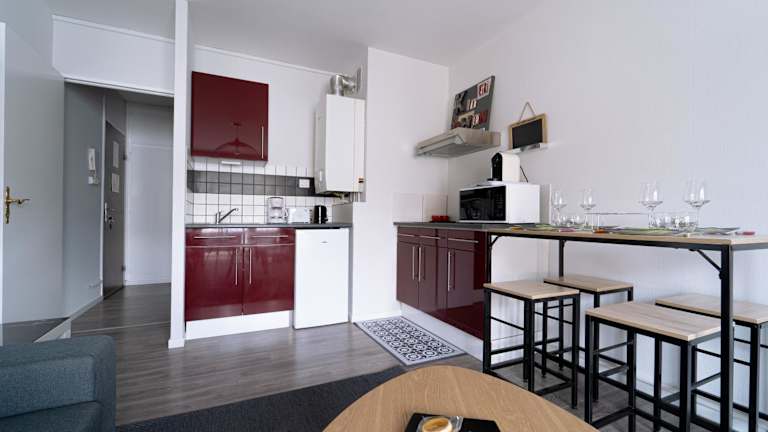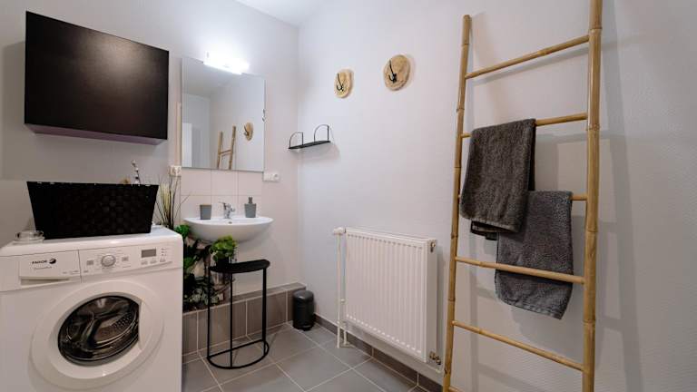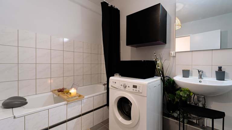 Die Ferienwohnung besteht aus einem Schlafzimmer, einem Wohnzimmer, einer voll ausgestatteten Küche mit Kühlschrank und Kaffeemaschine sowie einem Badezimmer mit Badewanne und kostenlosen Pflegeprodukten. Handtücher und Bettwäsche werden bereitgestellt. Ausstattung umfasst schallisolierte Zimmer und WLAN in allen Bereichen.