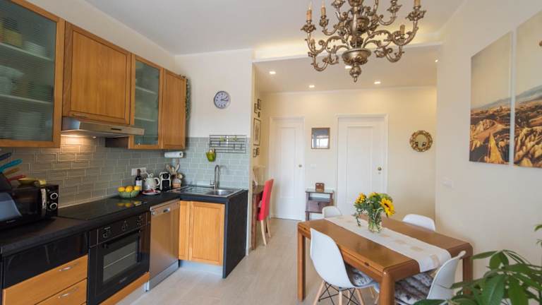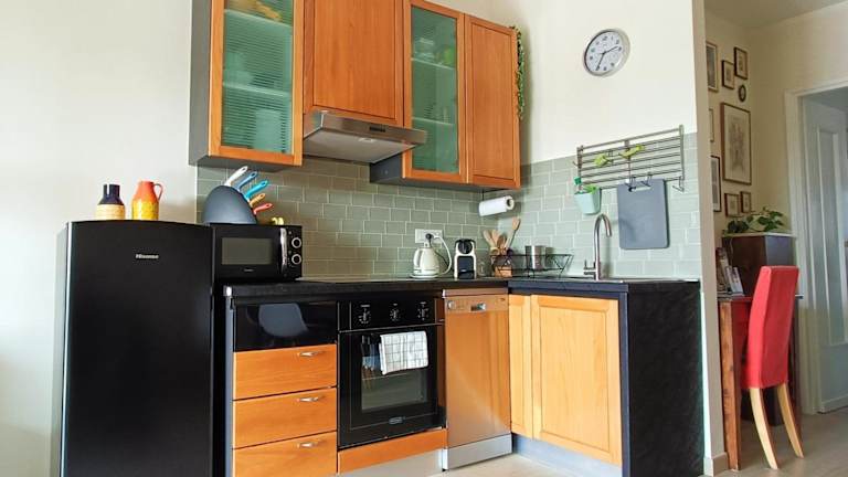 Die Ferienwohnung umfasst ein Schlafzimmer, ein Wohnzimmer und ein Badezimmer mit Bidet sowie Dusche. Zur Ausstattung gehören ein Kühlschrank, eine Kaffeemaschine, Klimaanlage, kostenloses WLAN und die Bereitstellung von Handtüchern sowie Bettwäsche.