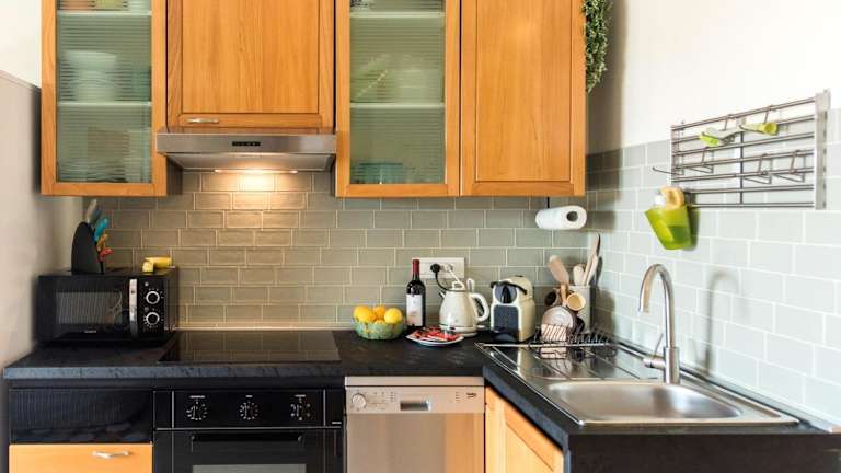 In der Unterkunft gibt es die Möglichkeit zur Lebensmittellieferung gegen Aufpreis. Zudem steht eine voll ausgestattete Küche zur Verfügung.