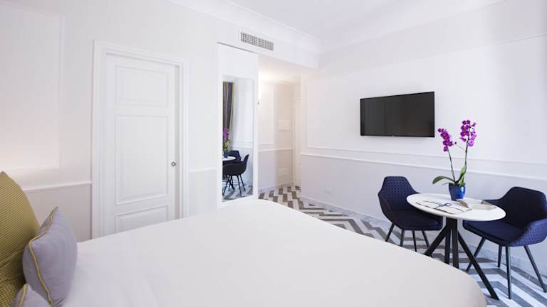 Die klimatisierten Zimmer im La Bambagina bieten modernen Komfort und sind mit einem Flachbild-Sat-TV, einem Kühlschrank, einem Wasserkocher und einem eigenen Balkon ausgestattet. Das eigene Bad verfügt über eine Dusche, einen Haartrockner und kostenfreie Pflegeprodukte. Vom Zimmer aus haben Sie einen herrlichen Blick auf die Stadt.