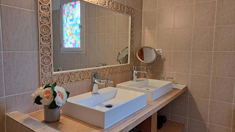 Jeden Morgen wird ein Frühstücksbuffet serviert. An einigen Abenden besteht die Möglichkeit, an einem Table d'hôtes teilzunehmen. Die Unterkunft bietet auch spezielle Ernährungsoptionen auf Anfrage und es gibt ein Café vor Ort.