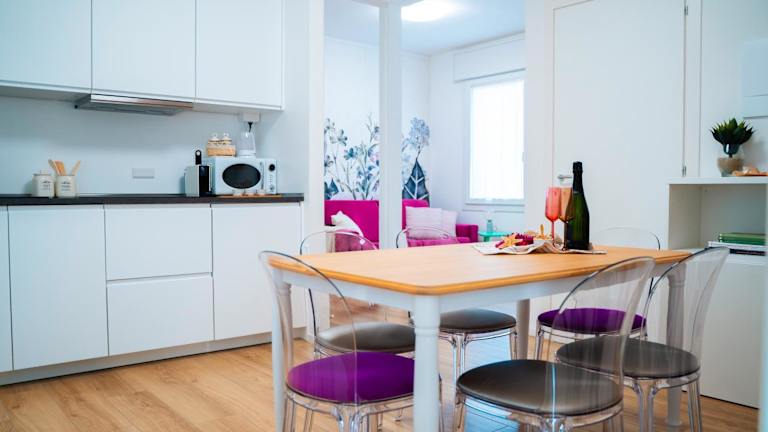 Die Ferienwohnung besteht aus zwei Schlafzimmern, einem Wohnzimmer und einer voll ausgestatteten Küche, die mit einem Kühlschrank und einer Kaffeemaschine ausgestattet ist. Zudem verfügt die Unterkunft über ein Badezimmer mit Bidet und Dusche. Handtücher und Bettwäsche werden bereitgestellt.