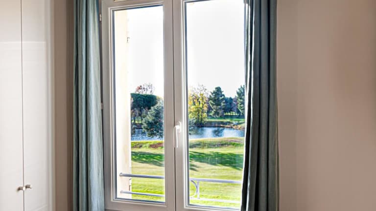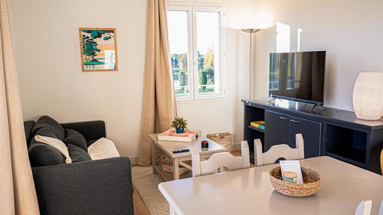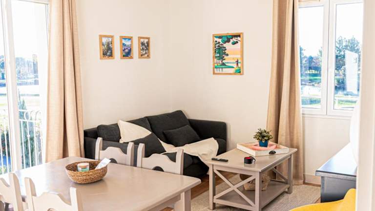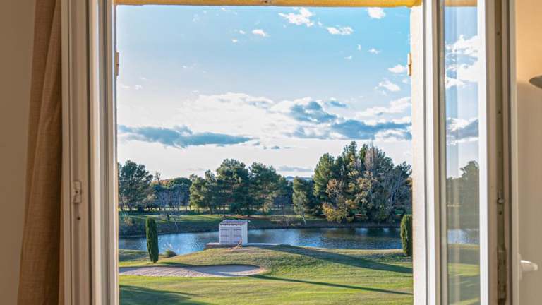 La Blanchère, vue golf bietet Übernachtungsmöglichkeiten in Form einer Ferienwohnung, die über einen eigenen Pool sowie einen Balkon mit Seeblick verfügt. Die Unterkunft ist klimatisiert und bietet eine Vielzahl an modernen Annehmlichkeiten.