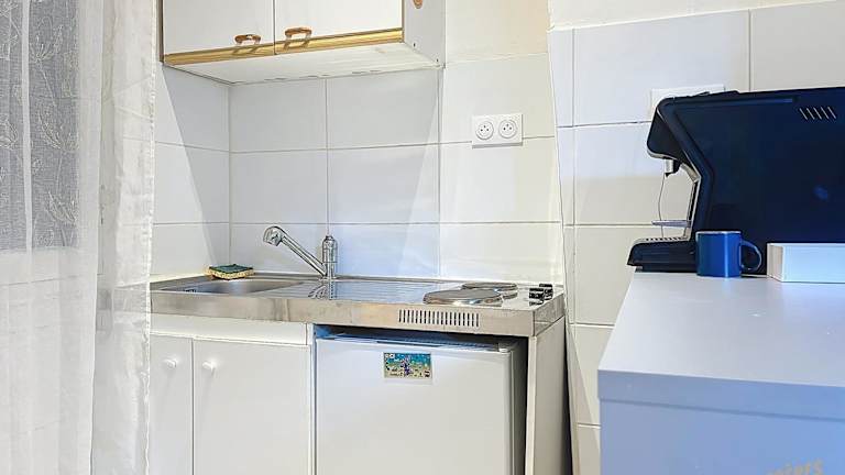 Die Ferienwohnung besteht aus einem Schlafzimmer, einer Küche und einem Badezimmer. Zudem ist ein Flachbild-TV vorhanden.