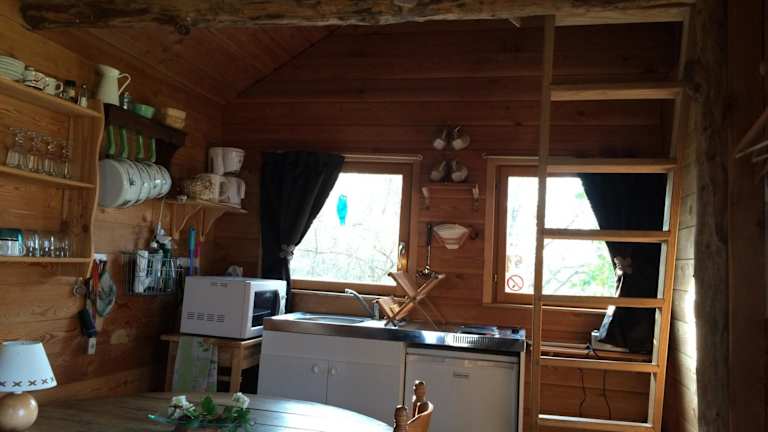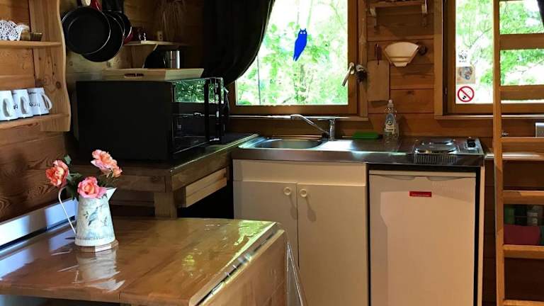 Das Baumhaus im La Cabane aux Secrets - Au Milieu de Nulle Part bietet eine gemütliche Unterkunft mitten im Wald. Es verfügt über eine Terrasse, auf der Sie die Natur in vollen Zügen genießen können. Im eigenen Badezimmer finden Sie einen Haartrockner und kostenfreie Pflegeprodukte vor. Die gut ausgestattete Küchenzeile ermöglicht es Ihnen, Ihre eigenen Mahlzeiten zuzubereiten und sich wie zu Hause zu fühlen.