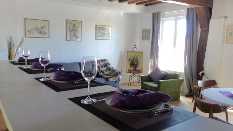 Die Unterkunft befindet sich in La Roche-Guyon, etwa 40 km vom Kongresszentrum Le CADRAN und 37 km vom Château de Thoiry entfernt. Der Flughafen Paris-Beauvais-Tillé ist 64 km entfernt.