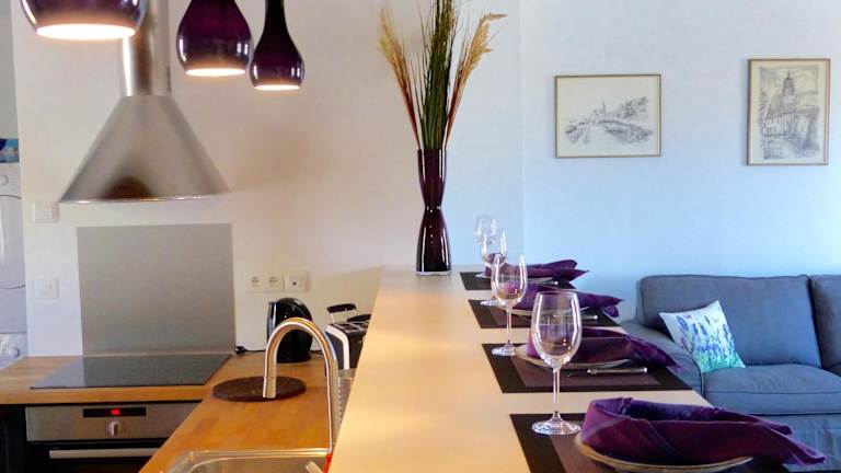 Die Ferienwohnung verfügt über ein Restaurant, in dem die Gäste speisen können.