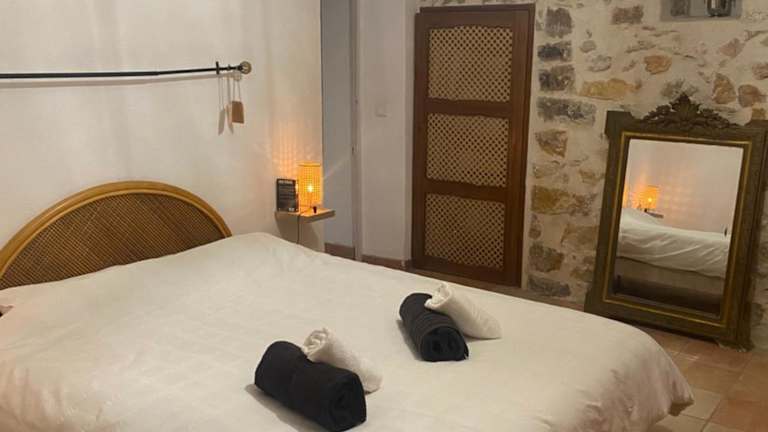 Die Unterkunft befindet sich in Cotignac und bietet eine ruhige Umgebung mit Blick auf die umliegenden Berge.