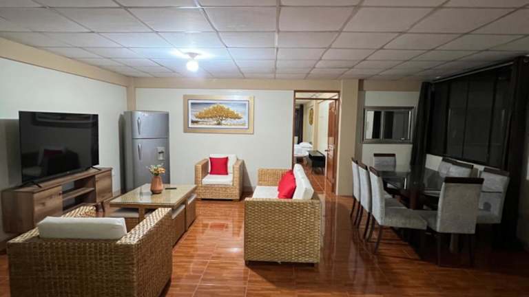 Die Unterkunft Departamento Familiar a 1 cuadra de la plaza bietet ein großzügiges Raumangebot mit Zugang zu einem Balkon sowie kostenlosem Privatparkplatz und WLAN.