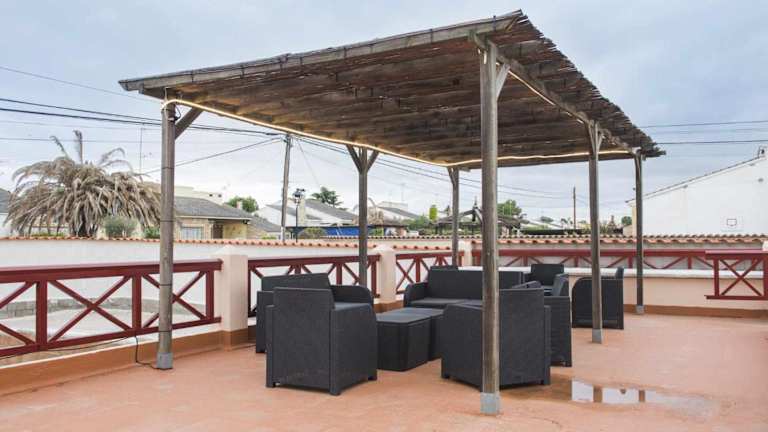 Die Zimmer bestehen aus 7 Schlafzimmern und sind klimatisiert. Die voll ausgestattete Küche verfügt über einen Kühlschrank und eine Kaffeemaschine. Handtücher und Bettwäsche werden bereitgestellt. BBQ-Möglichkeiten und Gartenmöbel sind ebenfalls vorhanden.