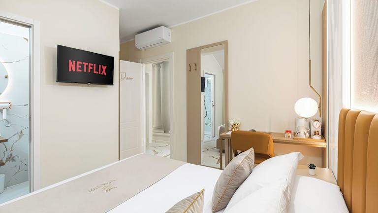 La Casa delle Dee - Self Check-in ist eine Unterkunft, die modernes Design mit praktischen Annehmlichkeiten kombiniert. Die Zimmer verfügen über eigene Balkone und sind klimatisiert. Der Check-in erfolgt selbstständig, was den Gästen mehr Flexibilität bietet. Die Unterkunft liegt in einem Gebäude ohne Aufzug und ist familiengeführt. Das Mindestalter für den Check-in beträgt 18 Jahre.