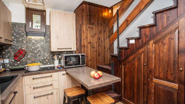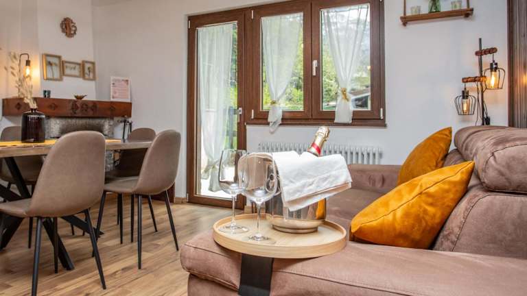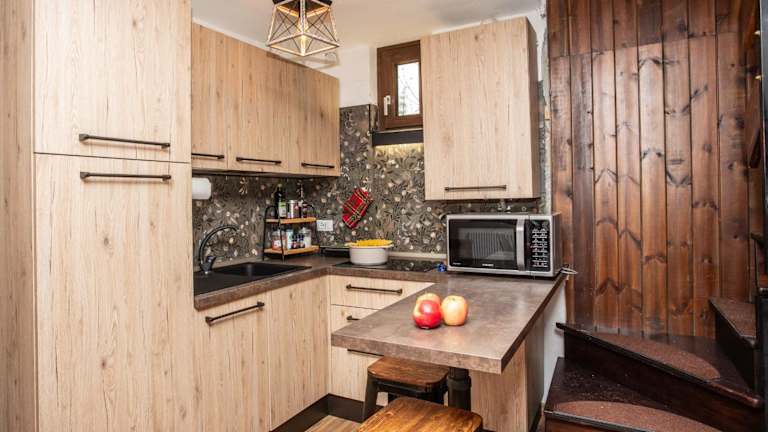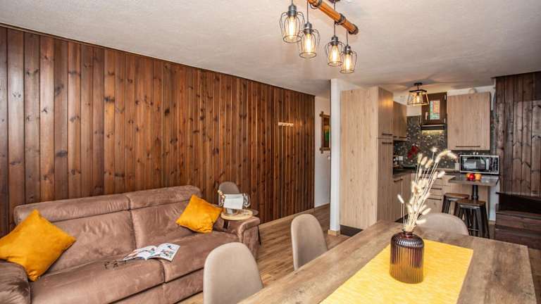 Die Unterkunft bietet zwei Schlafzimmer, ein Wohnzimmer mit Satelliten-Flachbild-TV, eine gut ausgestattete Küche sowie ein Badezimmer mit Bidet und Dusche. Die geschmackvolle Einrichtung und die funktionale Anordnung der Räume sorgen für einen komfortablen Aufenthalt.