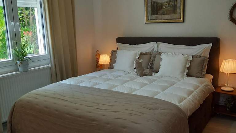 Das Ferienhaus besteht aus 2 Schlafzimmern, einem Wohnzimmer und einer voll ausgestatteten Küche, die mit einem Kühlschrank und einer Kaffeemaschine ausgestattet ist. Zudem gibt es ein Badezimmer mit einer Dusche und einen Haartrockner. Handtücher und Bettwäsche werden bereitgestellt. Die Unterkunft ist zudem klimatisiert.