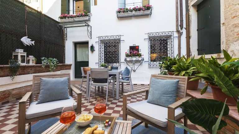 La Casa Più Centrale A Venezia, Con Corte Privata ist eine Ferienwohnung, die einen Garten und eine Terrasse bietet. Die Unterkunft ermöglicht den Blick auf die Stadt und bietet zudem einen privaten Bereich zum Entspannen.