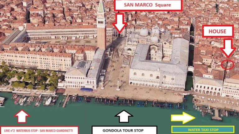 Die Ferienwohnung befindet sich im Zentrum von Venedig, in der Nähe bedeutender Sehenswürdigkeiten wie dem Dogenpalast, dem Markusdom und dem Markusplatz. Der Flughafen Venedig Marco Polo ist etwa 18 km entfernt.
