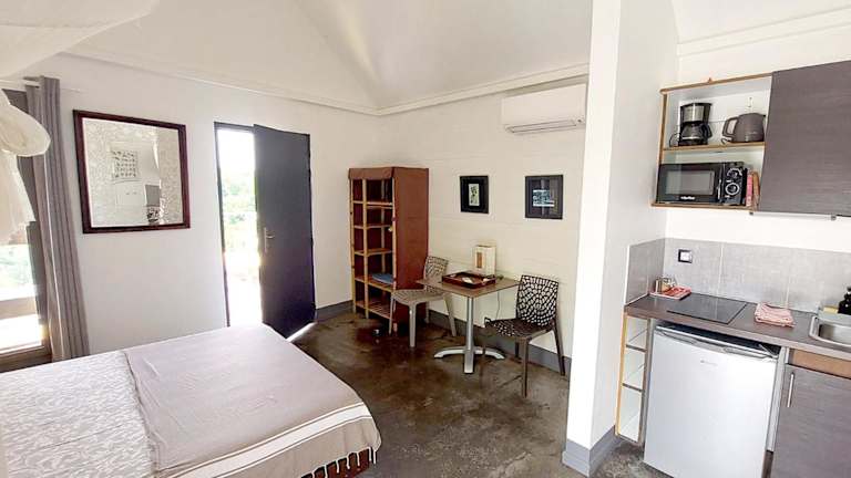 Die klimatisierten Unterkünfte im Hotel La Case des Caraïbes sind gemütlich und komfortabel eingerichtet. Jedes Zimmer verfügt über eine Küchenzeile mit einer Mikrowelle, einem Kochfeld, einer Kaffeemaschine und einem Wasserkocher, so dass die Gäste ihre eigenen Mahlzeiten zubereiten können. Die Zimmer bieten auch einen schönen Poolblick, der zum Entspannen und Genießen einlädt. Das kostenfreie WLAN ermöglicht es den Gästen, mit der Welt in Verbindung zu bleiben, während sie ihren Aufenthalt genießen.