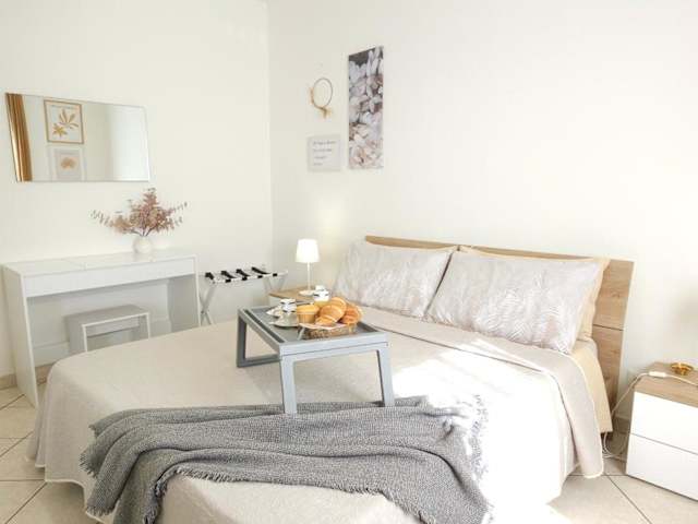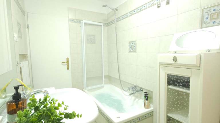 Die Ferienwohnung besteht aus einem Schlafzimmer, einem Wohnzimmer und einem Badezimmer mit Bidet und Dusche. Zur Ausstattung gehören ein Flachbild-TV, eine Spielekonsole, ein Computer sowie Klimaanlage. Es stehen außerdem Brettspiele/Puzzles zur Verfügung.