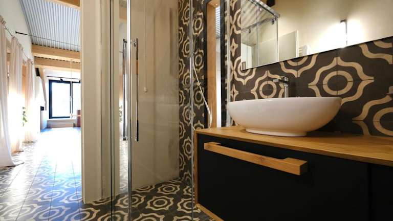 Die klimatisierte Ferienwohnung verfügt über ein Schlafzimmer und ein Badezimmer, das mit einem Bidet, einer Dusche und einem Haartrockner ausgestattet ist. Die Küche ist mit einem Kühlschrank, Geschirrspüler, Mikrowelle, Kaffeemaschine und Wasserkocher versehen.
