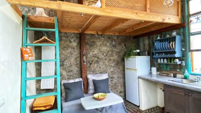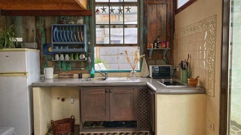 Das Ferienhaus umfasst ein Schlafzimmer, ein Wohnzimmer sowie eine voll ausgestattete Küche, die mit einem Kühlschrank und einer Kaffeemaschine ausgestattet ist. Ein Badezimmer mit Dusche und kostenlosen Pflegeprodukten ist ebenfalls vorhanden. Handtücher und Bettwäsche werden bereitgestellt.