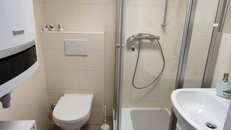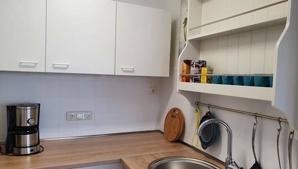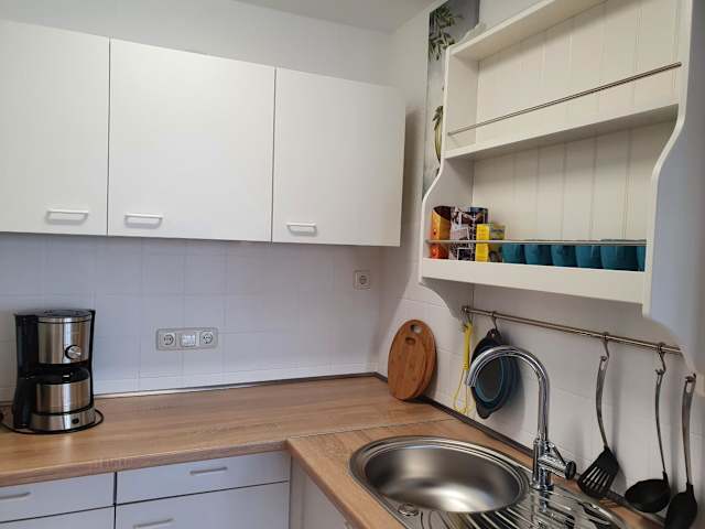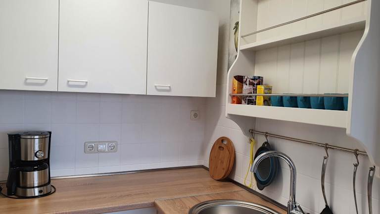 Die Ferienwohnung verfügt über ein Schlafzimmer, ein Wohnzimmer sowie eine voll ausgestattete Küche mit Kühlschrank und Kaffeemaschine. Ein Badezimmer mit Dusche sowie kostenlose Pflegeprodukte sind ebenfalls vorhanden. Handtücher und Bettwäsche werden bereitgestellt. Zu den Einrichtungen zählen zudem Nichtraucherzimmer und Heizung.