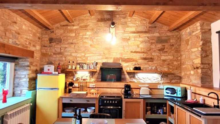 Das Ferienhaus verfügt über ein Schlafzimmer, ein Wohnzimmer mit Flachbild-TV, eine gut ausgestattete Küche mit Kühlschrank und Backofen sowie ein Badezimmer mit Dusche. Handtücher und Bettwäsche werden bereitgestellt. Die Unterkunft bietet Gartenblick und ist für Nichtraucher eingerichtet.