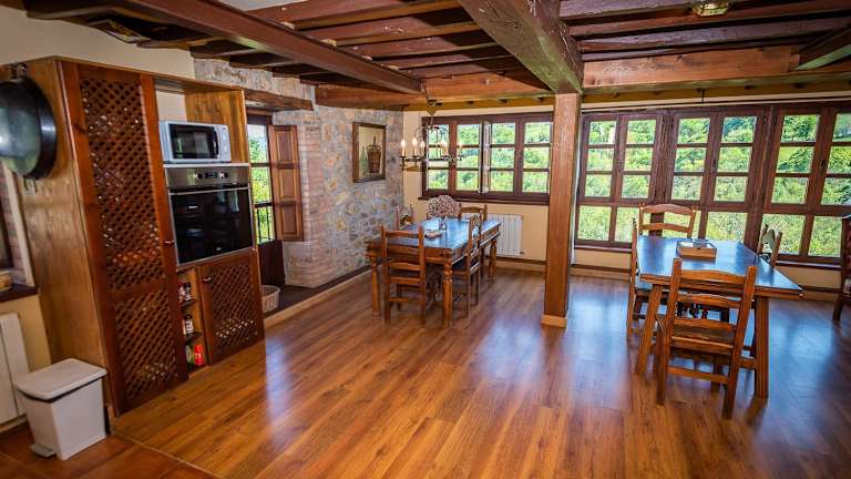Das La Casona de Soviña bietet 6 geräumige Schlafzimmer und 6 Badezimmer, die mit Bettwäsche und Handtüchern ausgestattet sind. Jedes Zimmer verfügt über einen Flachbild-TV und es gibt einen gemütlichen Essbereich, in dem Sie Ihre Mahlzeiten genießen können. Die voll ausgestattete Küche bietet Ihnen die Möglichkeit, Ihre eigenen Gerichte zuzubereiten. Darüber hinaus gibt es eine Terrasse mit herrlichem Bergblick, auf der Sie entspannen können.