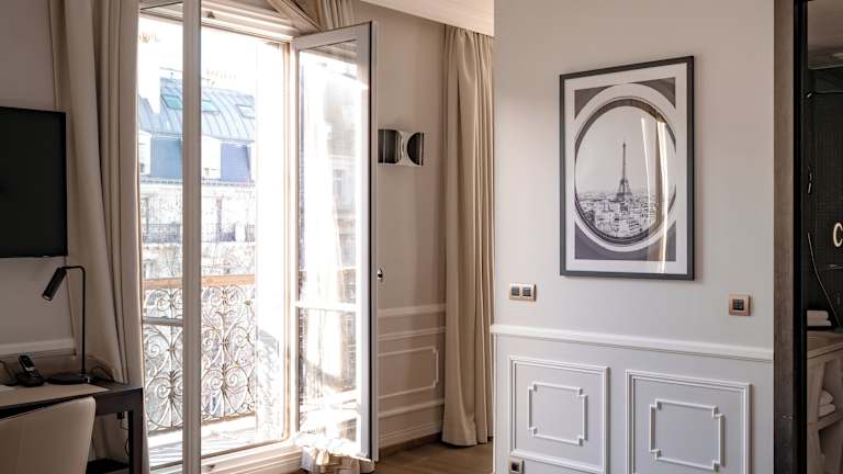 Das Hotel befindet sich in einer erstklassigen Lage im 16. Arrondissement von Paris, nur 900 m vom Eiffelturm entfernt. In der Umgebung finden Sie zahlreiche Sehenswürdigkeiten wie den Triumphbogen und die berühmte Champs-Elysées. Das Centre d'affaires Paris Trocadero und das Prinzenparkstadion sind ebenfalls in der Nähe. Der Flughafen Orly ist ca. 25 km entfernt und der Flughafen Charles de Gaulle ca. 30 km.
