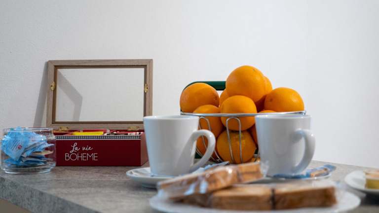 Eine voll ausgestattete Küche steht zur Verfügung, in der Gäste ihre Mahlzeiten zubereiten können. Es ist ein Kühlschrank und eine Kaffeemaschine vorhanden. Es sind keine Verpflegungsmöglichkeiten vor Ort angegeben.