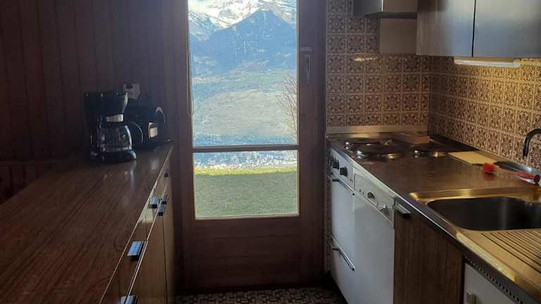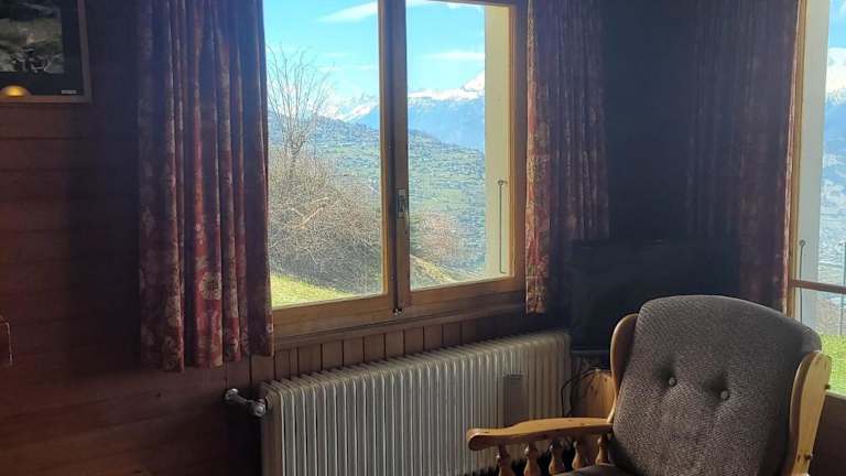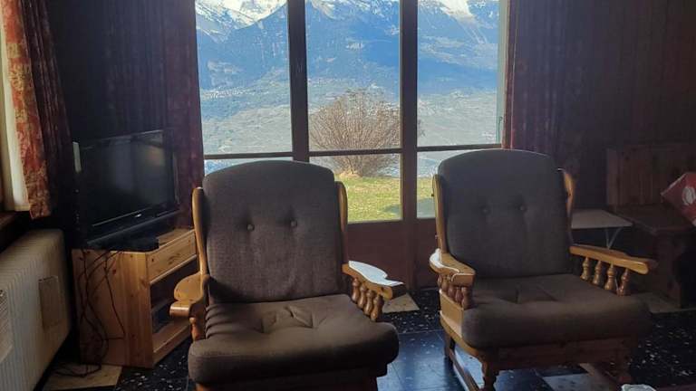 La Crettaz app dans chalet - SUNNY apartment 6 p bietet einen Blick auf die umliegenden Berge und übernachtet bis zu 6 Personen. Es handelt sich um eine Ferienwohnung in einem Chalet, die mit einem Balkon und einer Kaffeemaschine ausgestattet ist. Die Unterkunft verfügt über einen Garten und kostenloses Privatparken.