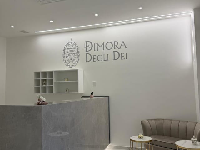 La Dimora Degli Dei bietet Wohneinheiten mit einem Balkon. Die Unterkunft umfasst verschiedene Annehmlichkeiten, darunter Klimaanlage, eine voll ausgestattete Küche mit Essbereich und Flachbild-TV sowie ein eigenes Badezimmer mit Dusche und Haartrockner.