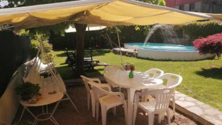 Die Ferienwohnung umfasst ein Schlafzimmer, ein Wohnzimmer und eine gut ausgestattete Küche mit Kühlschrank und Mikrowelle. Handtücher und Bettwäsche sind vorhanden. Es gibt auch einen eigenen Pool und Familienzimmer.