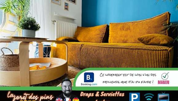 La Forêt des Pins bietet Übernachtungsmöglichkeiten in einer modernen Ferienwohnung mit Gartenblick, Balkon, kostenlosem WLAN und Annehmlichkeiten wie einer Kaffeemaschine. Die Unterkunft ist familienfreundlich und exklusive Feiern sind nicht gestattet. Ein kontaktloser Check-in sowie ein Mindestalter für den Check-in und die Gäste sind zu beachten.