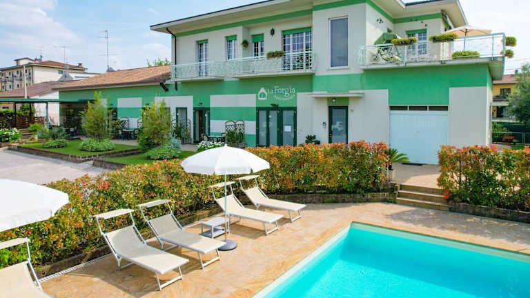 Das La Forgia Apartments bietet einen schönen Garten und einen Pool auf einer Terrasse mit Sonnenliegen. Hier können Sie sich entspannen und die Sonne genießen. Die Nähe zum Gardasee bietet zahlreiche Möglichkeiten für Wassersportaktivitäten und Bootsausflüge. Die Umgebung lädt auch zum Wandern und Radfahren ein. Nutzen Sie die kostenlosen Garagenparkplätze für Fahrräder und erkunden Sie die Umgebung auf eigene Faust.