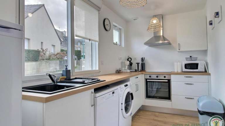 Das Ferienhaus verfügt über zwei Schlafzimmer und eine voll ausgestattete Küche, die mit einem Kühlschrank und einem Geschirrspüler bestückt ist. Es gibt zwei Badezimmer mit Dusche sowie kostenlosen Pflegeprodukten und einer Waschmaschine. Handtücher und Bettwäsche werden bereitgestellt.